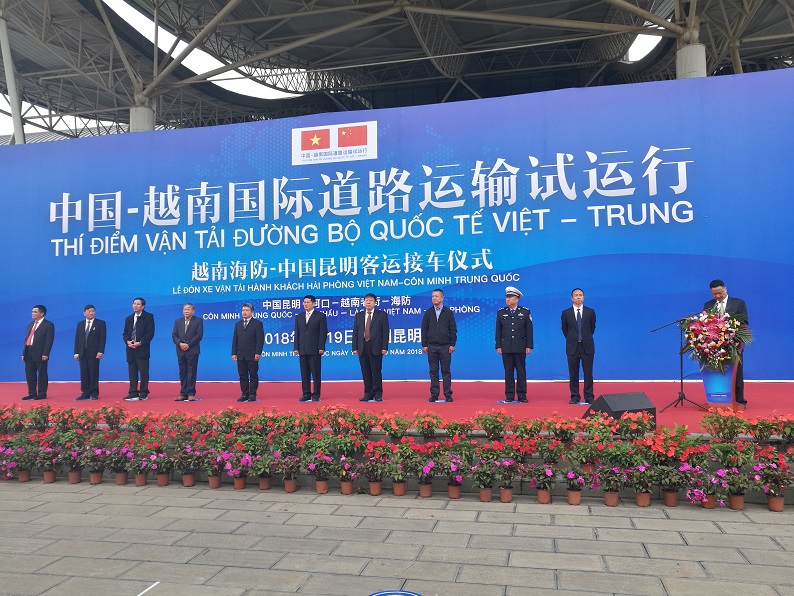 2018年9月19日上午10:00,受交通運(yùn)輸部委托,省交通運(yùn)輸廳在中國昆明市南部汽車客運(yùn)站舉行中國昆明—越南海防國際道路客運(yùn)試運(yùn)行接車儀式。此次接車儀式是中越雙方交通運(yùn)輸部磋商確定的中越國際道路客貨運(yùn)輸試運(yùn)行系列活動之一。